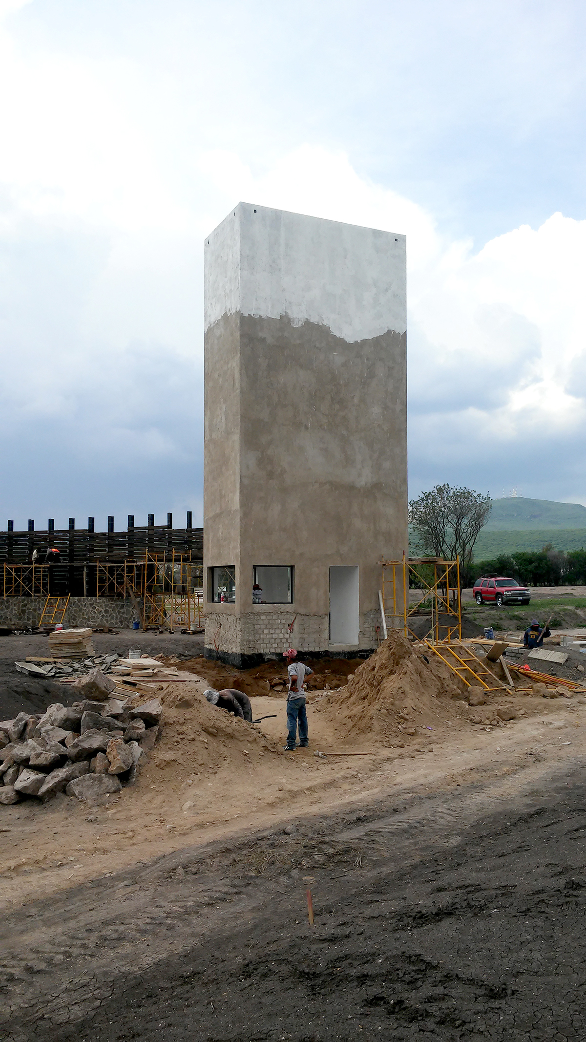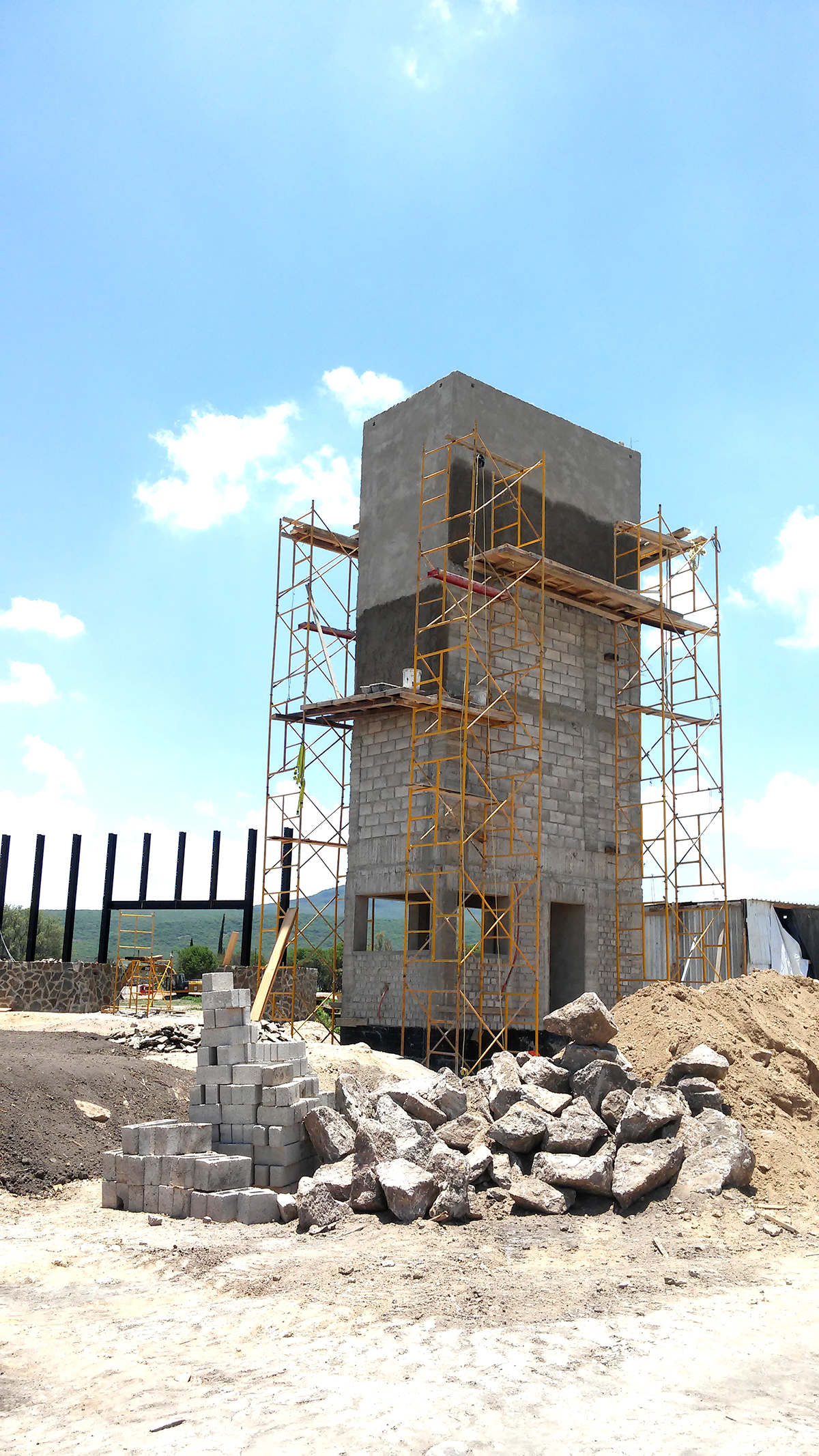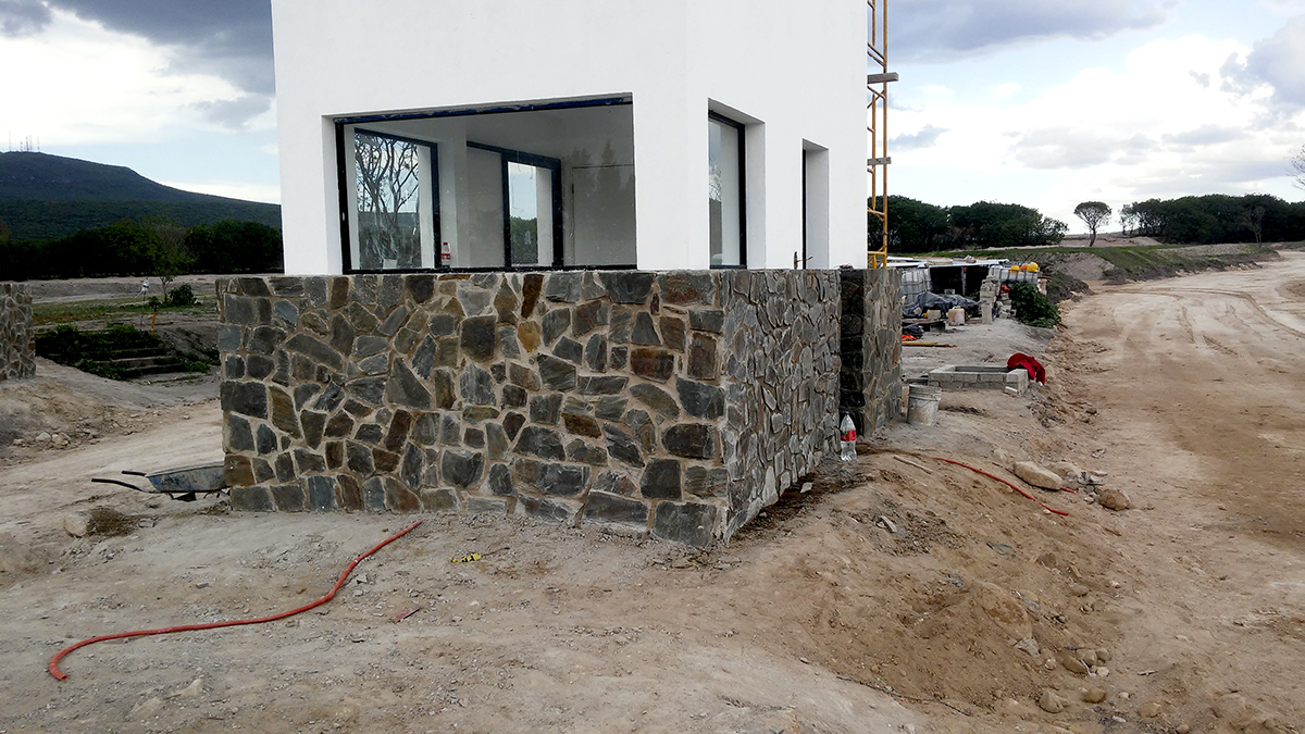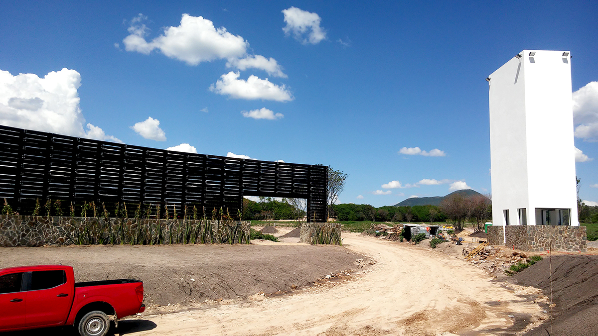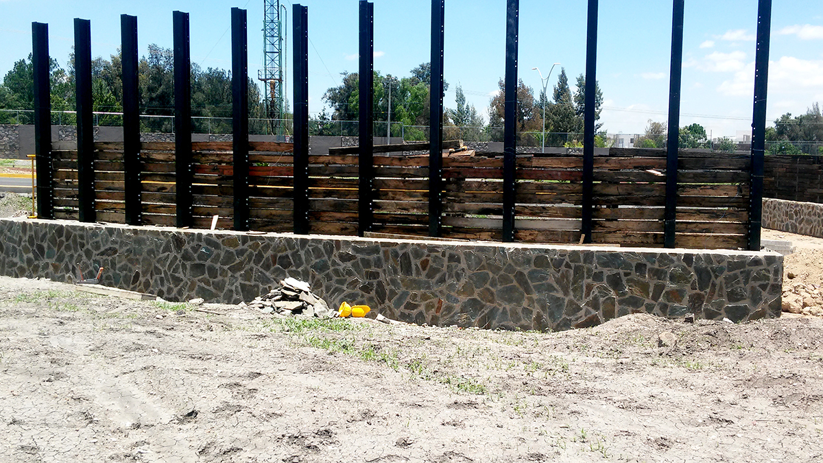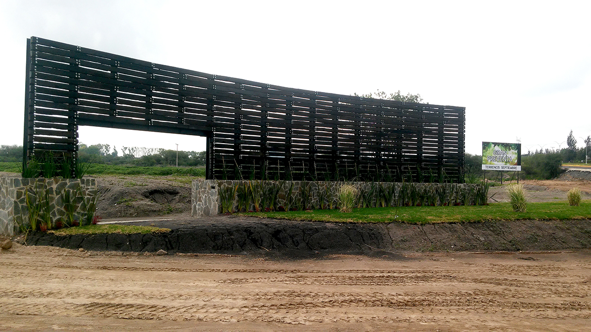 ACCESO, CASETA DE VIGILANCIA Y MURO CURVO